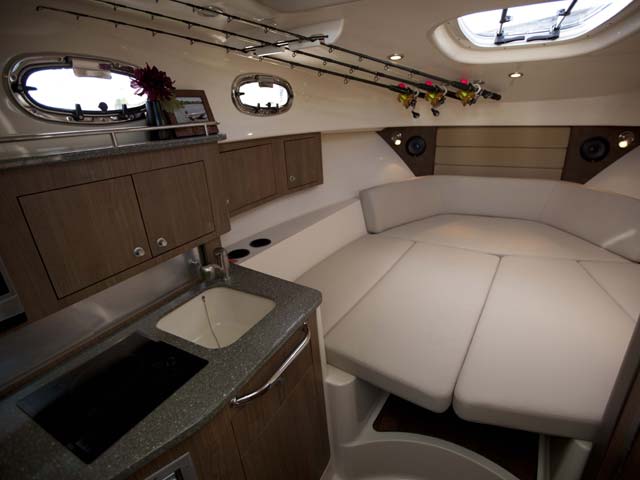 新的315 Conquest擁有釣魚及觀光船的所有功能:增強(qiáng)實(shí)用性,無與倫比的便利性和時(shí)尚舒適感。該艇展現(xiàn)了眾多功能和美觀上的提升,必然會(huì)受到深海釣魚愛好者和喜歡豪華航程人士?jī)烧叩那嗖A。完整的前風(fēng)擋玻璃及側(cè)開放式平板玻璃包圍提供清晰的,一覽無遺的駕駛視野,而一個(gè)30加侖的隔熱容器/冷卻器,增大了魚餌存儲(chǔ)器,在甲板里的雙魚箱,確保釣魚愛好者可以盡情垂釣。船的客艙提供了新的內(nèi)飾造型,包括了廚房上的天窗,可擴(kuò)展的中鋪為突然增加乘員時(shí)增強(qiáng)空間提供靈活性。駕御著您功能強(qiáng)大的315 Conquest盡情出海垂釣吧。