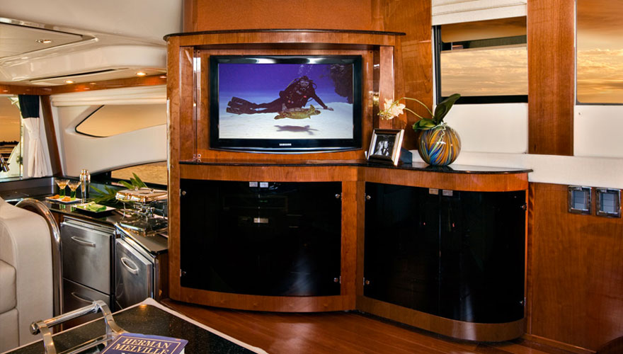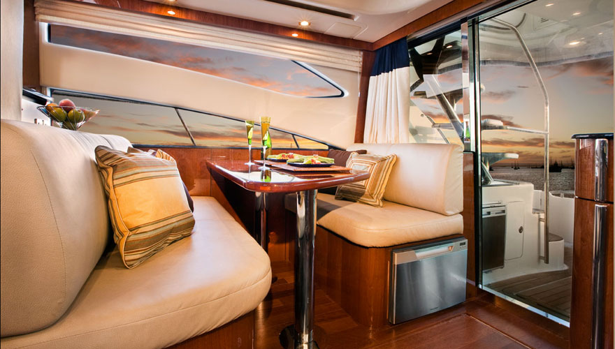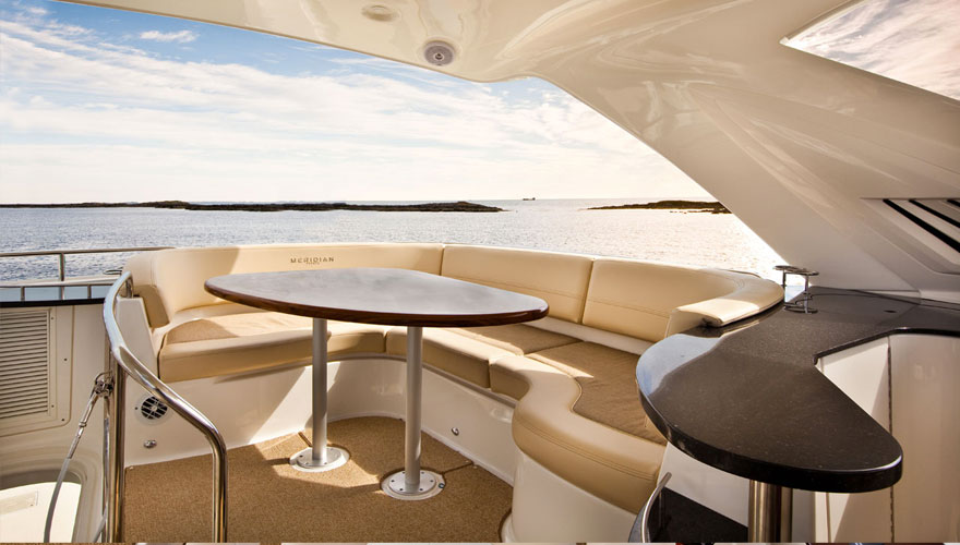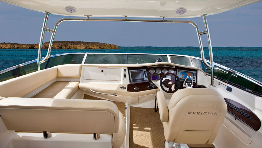Meridian 441 Sedan是一款設(shè)計非常新穎的飛橋硬頂游艇,客臥的雙船身玻璃,簡單飛橋設(shè)計,舒適的居住環(huán)境以及內(nèi)部生活區(qū)里自然得燈光設(shè)計。內(nèi)部生活區(qū)綜合了兩級舷窗,Meridian 的標(biāo)志寬敞艙室和對外部環(huán)境清晰的能見度。雙層飛橋作為一個娛樂區(qū)擁有足夠的乘客座位;選配的硬頂可以在天氣變化的時候把飛橋封閉起來。同時,Meridian 441 Sedan也可選配宙斯全舵向推進系統(tǒng)。 441寬敞的飛橋融合娛樂、社交與導(dǎo)航于一體,環(huán)境優(yōu)雅,標(biāo)準(zhǔn)的L型休閑沙發(fā)座和娛樂中心,客人可以通過選配的電烤箱、冰箱、電視機和硬頂在飛橋上盡情的享受海上歡樂時光。雙層舷窗可以讓客人在臥室內(nèi)享受自然的光線或站或坐都怡然自得。駕駛艙提供足夠的空間可以讓客人聚集在這里并且配有冷熱水淋浴系統(tǒng)。441的標(biāo)準(zhǔn)配置包括后巷雷達架和一個能供足夠開放空間的寬敞飛橋。可選配的太陽墊可供兩人舒適的躺在甲板上,可供選配的飛橋硬頂、空調(diào)及透明飛橋罩。 在主臥空間和物品是最重要的,一個雙人超大型沙發(fā)床是它的核心,還包括位于下方的甲板艙口,櫻桃木家具和全景窗戶。令人印象深刻的還有與主臥相連的主臥衛(wèi)生間,通風(fēng)系統(tǒng)完備,還貼心的設(shè)計有醫(yī)藥柜。物體表面的臺面光滑細(xì)膩,封閉的淋浴間、抽真空馬桶、擱物柜等都彰顯它的大牌風(fēng)范。地板下面藏有大量的儲物空間,小吃間位于廚房的對面,因此您不需要走多遠就可以得到美味的食物。