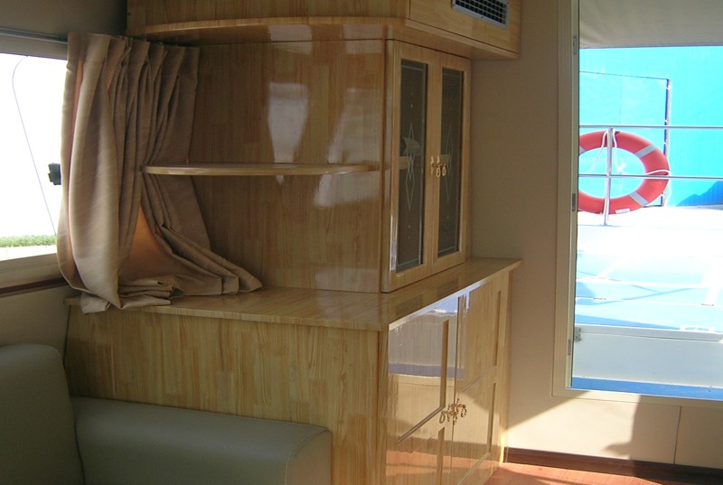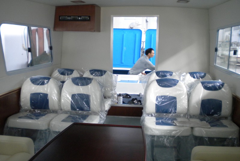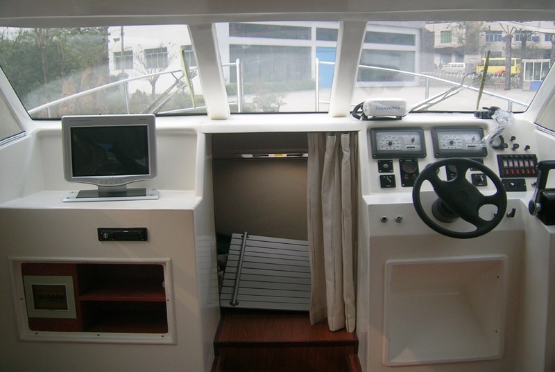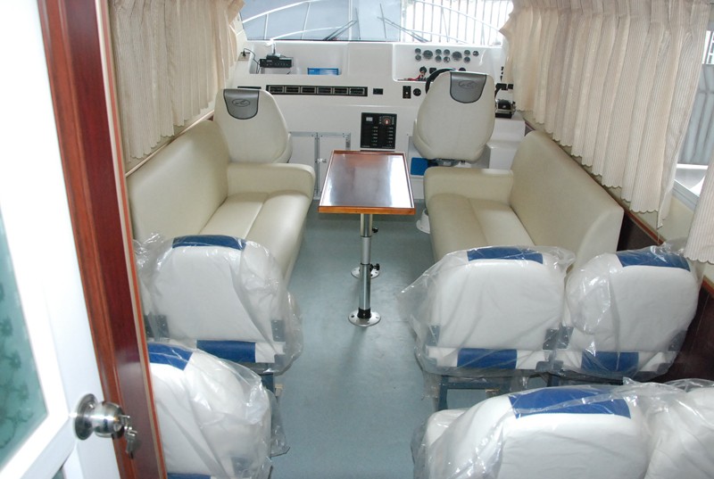 本艇為全玻璃鋼結(jié)構(gòu)、用模具整體成型的單板結(jié)構(gòu)舷外推進(jìn)的高速艇。穩(wěn)性、抗沉性符合本規(guī)范對(duì)遮蔽航區(qū)的航行要求。設(shè)計(jì)乘員定額為27人。本艇采用舷內(nèi)外機(jī)推進(jìn),配置ME270STIL95Kw舷內(nèi)外機(jī)2臺(tái),燃油箱240升2個(gè),置于4#~6#肋位左右舷之間。起動(dòng)蓄電池采用電壓12V,容量為105Ah×4塊,置于0?!?/span>3#肋位左右舷。4?!?/span>5#肋位設(shè)置KDE6500TA3(陜西威凱)發(fā)電機(jī)組1套。輸出功率5Kw。本艇采用的舷內(nèi)外機(jī)電啟動(dòng)前操式。由駕駛臺(tái)直接操縱發(fā)動(dòng)機(jī)油門和舷內(nèi)外機(jī)的轉(zhuǎn)動(dòng)以及推進(jìn)器的轉(zhuǎn)向,以達(dá)到自由、安全、可靠的使艇前進(jìn)、倒退和艇體的轉(zhuǎn)向。駕駛臺(tái)上配有必要的操縱儀表和發(fā)動(dòng)機(jī)的儀表。在使用功率下航速可達(dá)35Km/h。